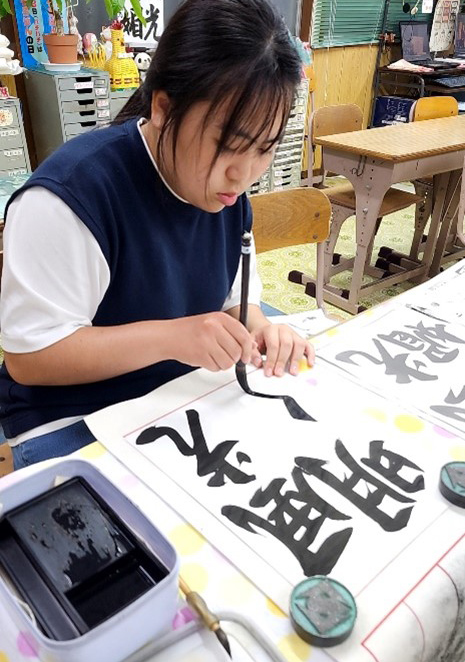 検定課題を進めるだけでなく、全国大会の出場や、各書道大会への出品、カレンダー作品制作など、様々な活動にも精力的に取り組みながら、努力・忍耐力・向上心等を養えるよう指導してまいります。