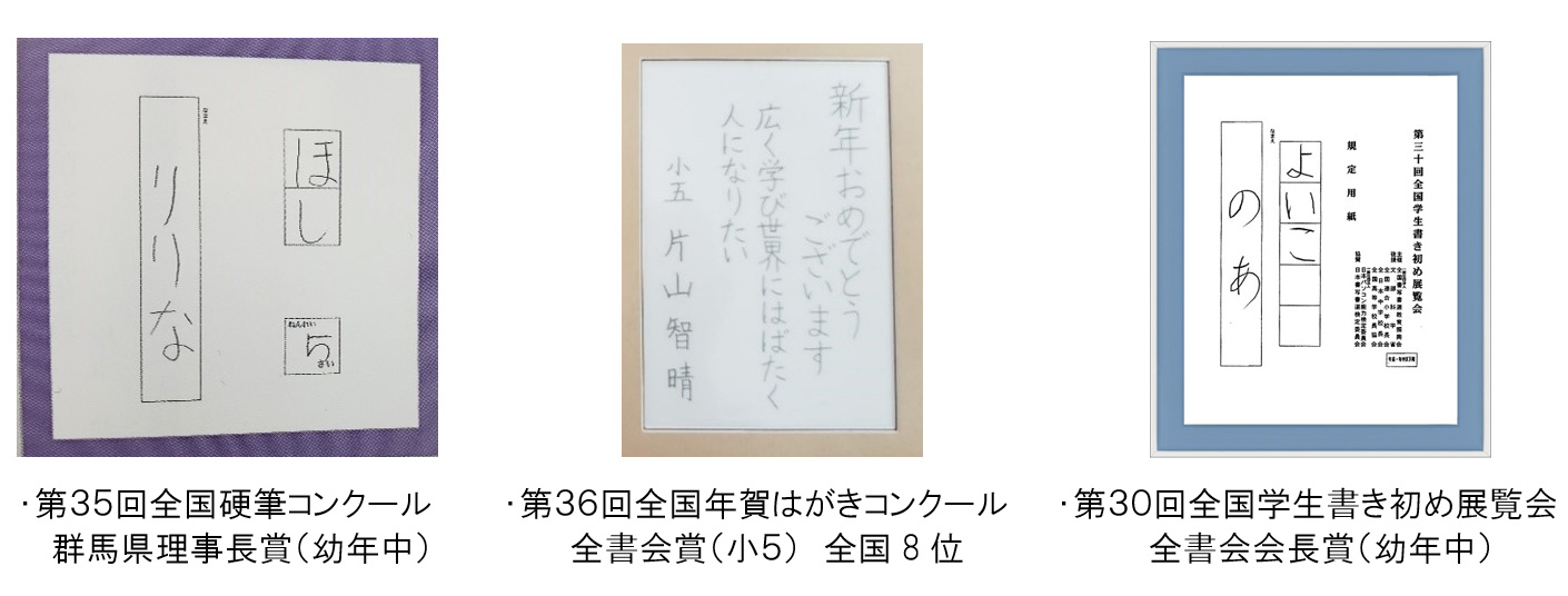| 第35回全国硬筆コンクール | 群馬県理事長賞 全国学年4位(幼年中) |